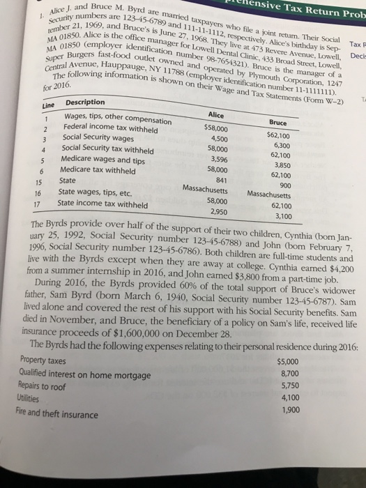 Solved Ierensive Tax Return Prob M Byrd Are Married Chegg Com